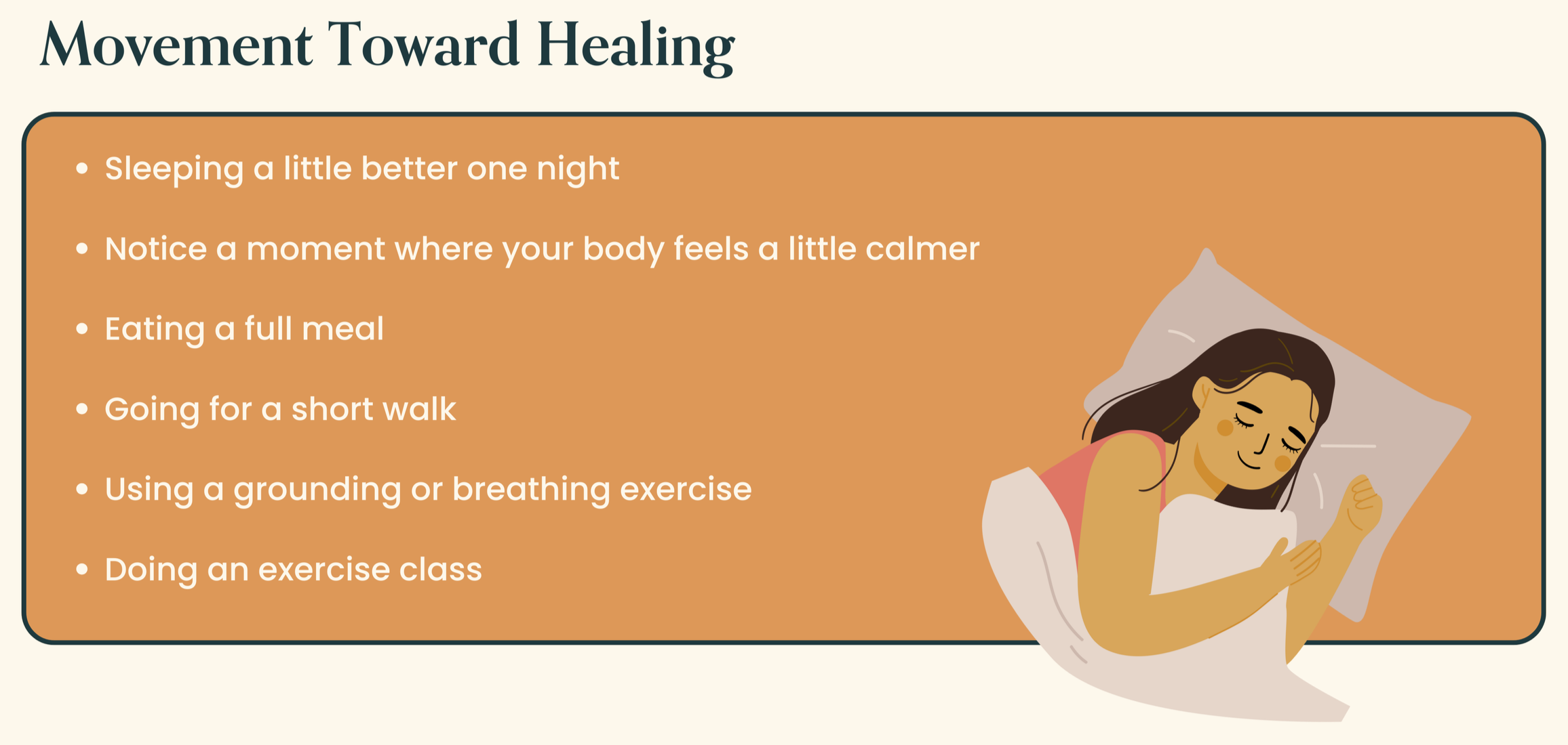 Those small wins help prevent burnout and keep you from feeling swallowed by the process. They turn recovery into a series of manageable steps instead of one impossible task. Noticing them is a way of saying: